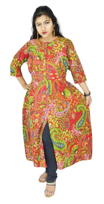 This long calf-length kurti boasts a universally flattering silhouette that drapes beautifully, offering a graceful and elegant look. The ¾ length sleeves strike a perfect balance between style and practicality, providing ample coverage while allowing for freedom of movement. Each kurti is a testament to fine stitching, showcasing meticulous attention to detail and robust construction that ensures longevity. Our expert tailoring guarantees a comfortable and flattering fit for various body types.