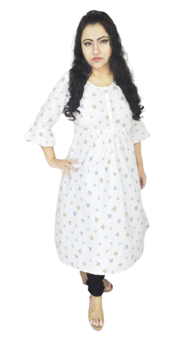 Printed Cream Cotton Anarkali Kurti for Women . 100% Cotton Fabric with Floral Print – Perfect for All-Day Wear