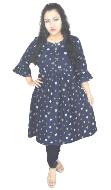 Printed Dark Blue Cotton Anarkali Kurti for Women Smart Tailoring & Flattering Fit