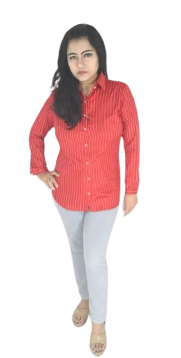 Red Striped Rayon Shirt for Women – A Blend of Comfort & Elegance