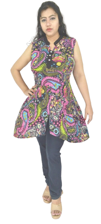 H2: Sleeveless Black Printed Short Anarkali Kurti for Women– A Blend of Tradition and Modern Comfort