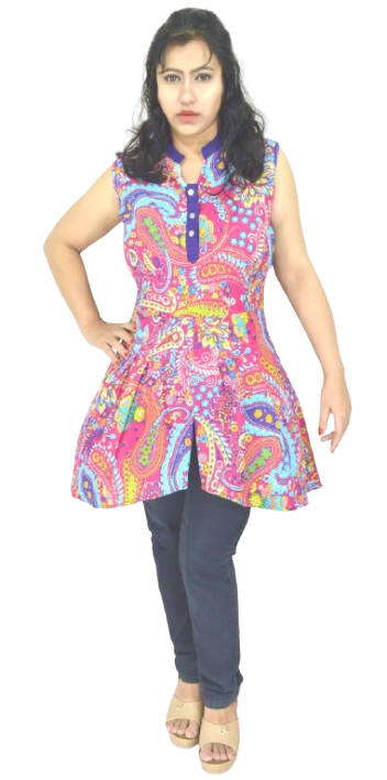 Step into style and comfort with this Sleeveless Pink Printed Cambric Cotton Short Anarkali Kurti for Women, thoughtfully designed for today’s modern yet tradition-loving woman. This kurti brings together a timeless ethnic Anarkali silhouette with updated design elements like a sleeveless cut, front slit, and above-knee length, creating a piece that’s perfect for everything from casual daily wear to light formal occasions.