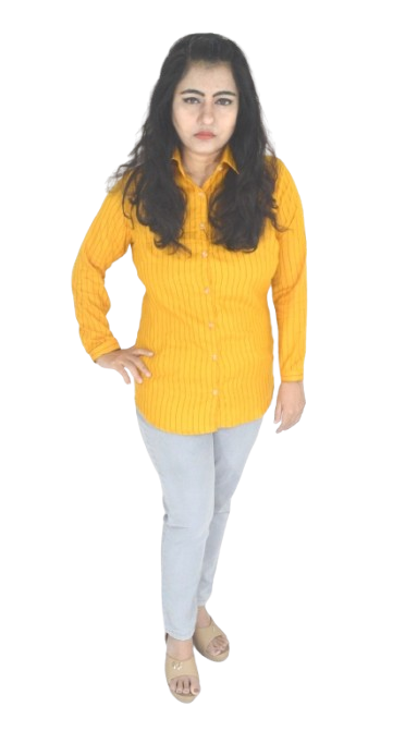 Yellow Striped Rayon Shirt for Women – A Blend of Comfort & Elegance